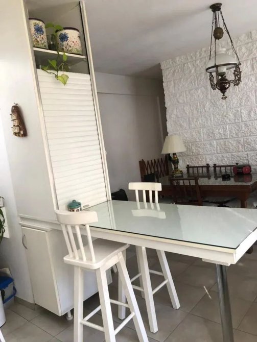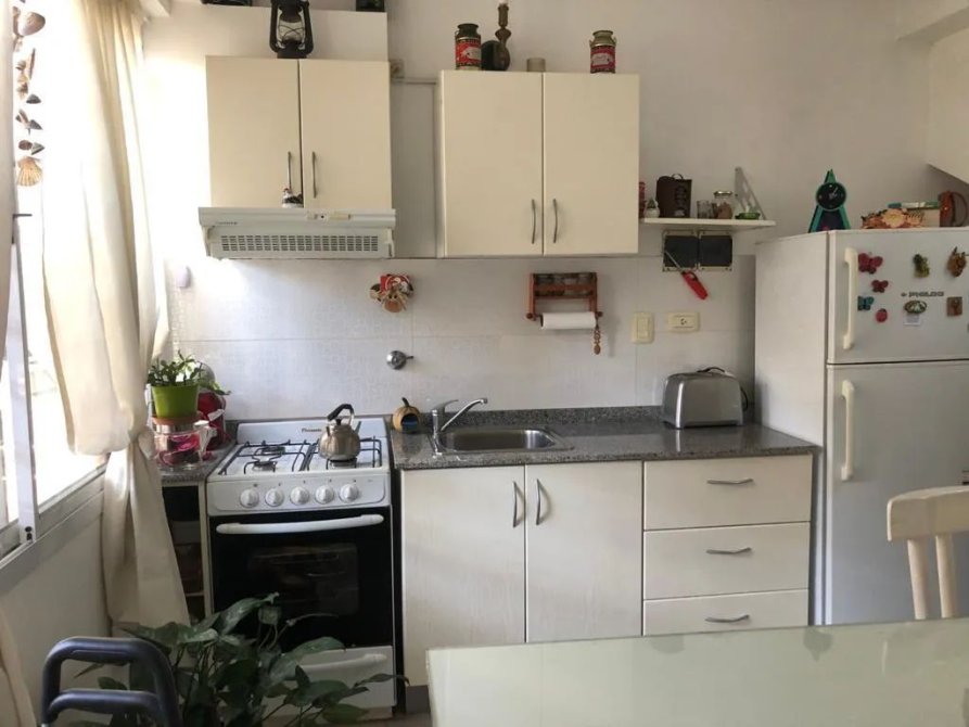 Cuenta con un amplio living-comedor con cocina integrada, equipada con muebles bajo y sobre mesada, y un práctico desayunador que la separa del ambiente principal.