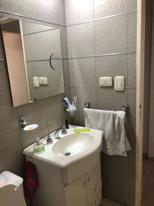 El baño es completo, con bañera, vanitory y dos ventanales fijos que garantizan buena ventilación e iluminación natural.
