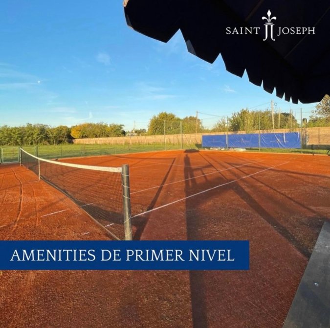 - área deportiva (4 canchas de tenis de polvo de ladrillo y cancha de fútbol)